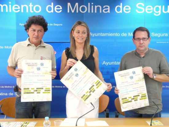 El plazo de matriculación en los Cursos y Talleres de la Concejalía de Cultura de Molina de Segura para el curso 2008/09 comienza el miércoles 1 de octubre y se realizará por orden de llegada, según ha informado hoy viernes en rueda de prensa la Concejala de Cultura, Mariola Martínez Robles. Los cursos y talleres serán impartidos en barrios y pedanías del municipio, además del centro urbano, siguiendo la línea de descentralización de los últimos años.