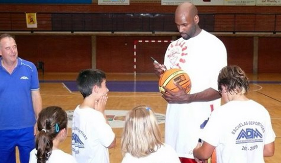 Los dos americanos llegaron para la parte final, donde se entregaron los trofeos al mejor jugador en las categorías de Habilidades y de Lanzamiento a Canasta y un balón y una camiseta a cada niño. También firmaron autógrafos y se hicieron numerosas fotos tanto con los chavales como con algún que otro padre que también se animaba a posar con ellos.