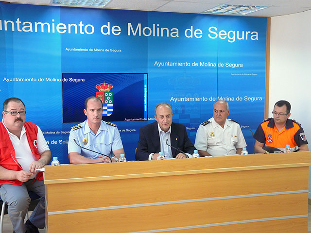 El Dispositivo Especial de Seguridad Ciudadana, Tráfico y Servicios Municipales de las Fiestas Patronales de Molina de Segura 2009 ha sido presentado en rueda de prensa hoy, viernes 4 de septiembre, por el Concejal de Seguridad Ciudadana, Fortunato Arias Ciudad. En la presentación le han acompañado el Inspector Jefe de la Comisaría de la Policía Nacional de Molina de Segura, Antonio Sánchez Bernabé, el Subinspector Jefe de la Policía Local, José Pérez Almagro, el representante de la Asamblea Comarcal de Cruz Roja Molina / Vega Media, José Rodríguez, y el Coordinador de la Agrupación de Voluntarios de Protección Civil de Molina de Segura, Cristian Valls López.