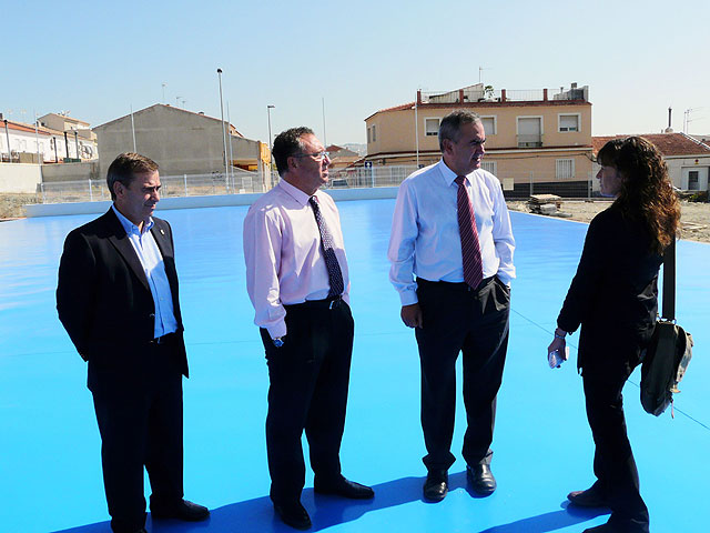 El Alcalde de Molina de Segura, Eduardo Contreras Linares, y el Delegado del Gobierno en Murcia, Rafael González Tovar, han visitado, hoy viernes 25 de septiembre, dos de las obras correspondientes al Fondo Estatal de Inversión Local (FEIL), la nueva pista polideportiva del futuro centro de día de la asociación AFESMO, y la nueva cubierta de la pista polideportiva del Colegio Público La Purísima de El Llano de Molina.