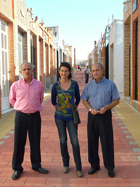 La Concejala Delegada del Cementerio Municipal del Ayuntamiento de Molina de Segura, Victoria Gómez Alcázar, acompañada por el Concejal de Seguridad Ciudadana, Fortunato Arias Ciudad, y el Concejal responsable de la Brigada Municipal de Obras, ha realizado, hoy viernes 30 de octubre, una visita a las obras de mejora realizadas en el Cementerio Ntra. Sra. de la Consolación. El consistorio ha invertido durante este año 120.000 euros en la instalación de adoquinado en tres calles laterales y cuatro travesías.