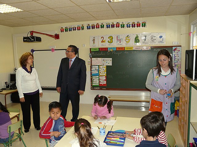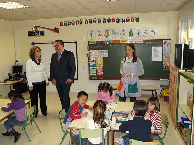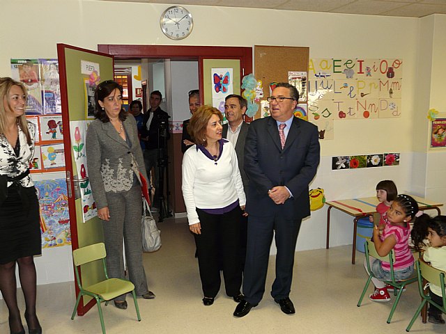 El acto de inauguración de las obras de ampliación del aulario de Educación Infantil del Colegio Público Gregorio Miñano de Molina de Segura ha tenido lugar hoy miércoles 5 de mayo. Han asistido el Alcalde de la localidad, Eduardo Contreras Linares, la Concejala de Educación, Mariola Martínez Robles, y el Concejal de Obras e Infraestructuras, Daniel Soltero Chaves.