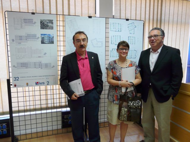 La directora gerente del Instituto de Vivienda y Suelo de la Región (IVS), Juana Castaño, acompañada del alcalde de Molina de Segura, Eduardo Contreras, presentó hoy el proyecto para la construcción de 32 nuevas viviendas protegidas en régimen de venta que el Ejecutivo autonómico adjudicará mediante sorteo público ante notario el próximo 30 de septiembre.