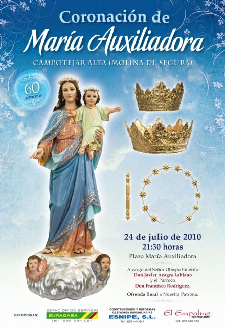 Las Fiestas 2010 de la pedanía de Campotéjar Alta de Molina de Segura, en honor a la Virgen María Auxiliadora, tendrán lugar del viernes 23 al domingo 25 de julio. Este año se celebra el 60° aniversario de la imagen de la Virgen María Auxiliadora y se llevará a cabo su Coronación por el Obispo Emérito de Cartagena, Javier Azagra Labiano. Los actos previstos son: