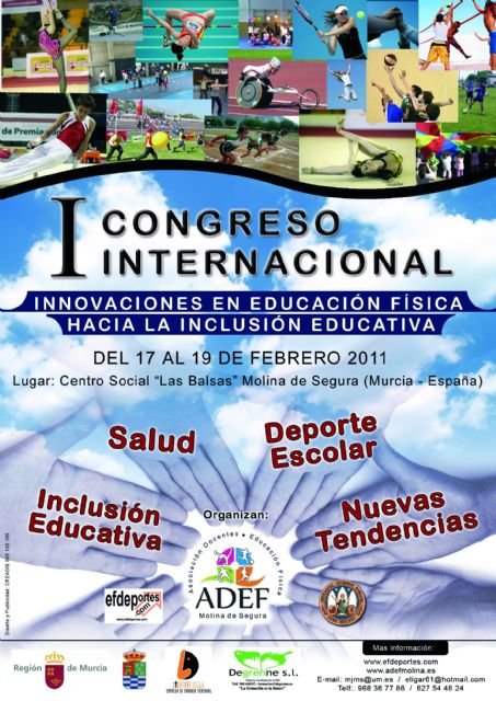 El I Congreso Internacional Innovaciones en Educación Física hacia la Inclusión Educativa, organizado por la Asociación de Docentes de Educación Física (ADEF) de Molina de Segura, la Universidad de Murcia y efdeportes.com, en colaboración con el Ayuntamiento de la localidad, tendrá lugar del jueves 17 al sábado 19 de febrero, en el Centro Las Balsas (en Calle Cartagena, junto a Plaza de los Grifos). A su presentación en rueda de prensa han asistido el Alcalde de Molina de Segura, Eduardo Contreras Linares, el director del congreso y Profesor de la Facultad de Educación de la Universidad de Murcia, Pedro Luis Rodríguez García, el representante de ADEF de Molina de Segura, Eliseo García Cantó, la Concejala de Educación, Mariola Martínez Robles, y el Concejal de Deportes, Jesús Maeso Monge.
