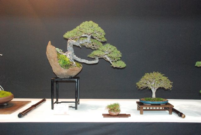 Durante la exposición, que se podrá contemplar hasta el próximo lunes 19 de septiembre en la planta baja del Casino, el visitante encontrará un bonsái acompañado por una planta y otro bonsái pequeño.