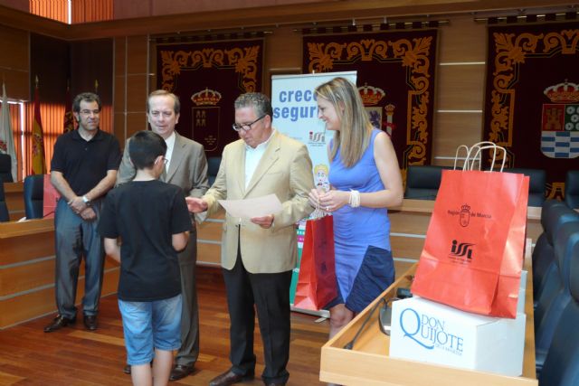 El acto de entrega de premios de la campaña CRECE EN SEGURIDAD, dirigida a escolares, y promovida por la Consejería de Educación, Formación y Empleo de la Región de Murcia, a través del Instituto de Seguridad y Salud Laboral, en colaboración con el Ayuntamiento de Molina de Segura, ha tenido lugar hoy miércoles 6 de junio, en el Salón de Plenos del Ayuntamiento. Han asistido el Alcalde de la localidad, Eduardo Contreras Linares, el Director del Instituto de Seguridad y Salud Laboral de la Región de Murcia, Tomás Pérez Fuentes, la Concejala de Educación, Mariola Martínez Robles, y el Director y Coordinador de la campaña y Técnico de la empresa SICO Ingeniería y Seguridad (responsable del desarrollo de la campaña), Juan Carlos Simón Conesa.