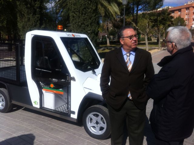 La empresa de servicios Sercomosa de Molina de Segura presenta un nuevo vehículo eléctrico para trabajos de mantenimiento en zonas verdes del centro urbano