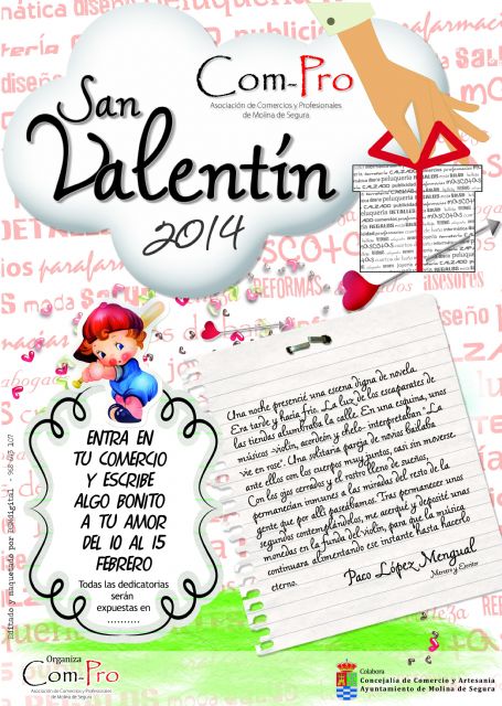 La Asociación de Comercios y Profesionales de Molina de Segura COM-PRO, en colaboración con la Concejalía de Comercio y Artesanía del Ayuntamiento molinense, ha puesto en marcha la campaña San Valentín 2014, que se celebra desde el 10 al 15 de febrero.