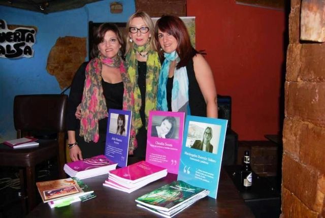 Tres voces, un alma, acto de presentación de los poemarios Susurrando palabras, de Mariángeles Ibernón Valero (Cehegín), Versos de invierno y veredas nocturnas, de Claudia Souza (Argentina), y Dis-tinta, de Julia Moreno (Madrid), publicados por la editorial murciana ADIH, tendrá lugar el jueves 20 de marzo, a las 20.00 horas, en el salón de actos de la Biblioteca Salvador García Aguilar (en la Avenida del Chorrico, n° 44, en Molina de Segura).