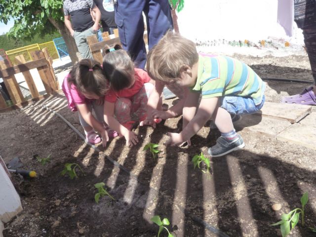El huerto escolar se ha puesto en marcha con la ayuda de los alumnos del programa de integración socio-laboral de la Concejalía de Bienestar Social, un programa de inserción laboral para personas discapacitadas, que han colaborado en la creación de este pequeño huerto. En la presentación del proyecto, que tuvo lugar el martes 27 de mayo, estuvieron presentes los alumnos de dicho programa, junto a la dirección de la escuela infantil, la Concejala de Bienestar Social, Lola Vicente Quiles, y la Concejala de Educación, Reme López Paredes.
