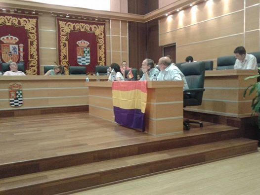 Los ediles Francisco Vicente y Antonio López Vidal colocaron la bandera delante de su bancada y exhibieron otra pequeña enseña, también republicana, en su mesa, que estuvieron presentes desde la lectura de los acuerdos.