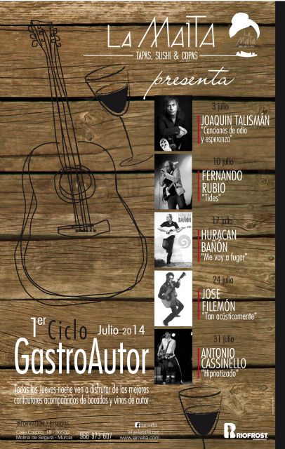 El gastrobar La Maita, ubicado en el conjunto histórico de la Casa de la Maita y Mirador del Castillo de Molina de Segura, ha organizado el I Ciclo GastroAutor durante el mes de julio de 2014. Todos los jueves noche, el local ofrece la actuación de cantautores, acompañada de bocados y vinos de autor.