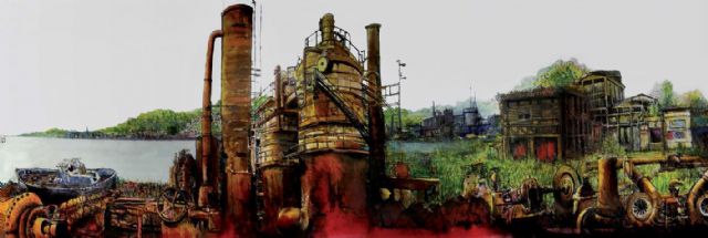 Según explica el escritor Manuel Moyano, "Jesús Montoia Oribe nos ofrece a través de su obra su propia visión del mundo, el mundo de la sociedad postindustrial. Un mundo decadente, degradado, en ruinas, donde el capitalismo enarbolando como única bandera los intereses económicos ha arrasado cualquier valor ético y ha acabado por corromperlo todo. No se trata de un tema nuevo para él: ya aparecía reflejado en su obra juvenil, y desde entonces ha reflexionado mucho al respecto. En la sociedad postindustrial explica el artista se ha producido una transición económica que ha reestructurado la sociedad entera, pasando de una economía industrial a otra de servicios basada en el desarrollo técnico… Lo que yo quiero mostrar es el lado humano de este proceso, la basura que esta máquina de producir beneficios va dejando por el camino, basura tanto material como humana… Quiero mostrar a los desechados por el sistema. Pero, como anota el propio artista en su cuaderno de bitácora, también "hay belleza en lo decadente". Todos sentimos cierta emoción estética ante el crepúsculo, ya sea de un día o de una civilización. Con esa idea resonando en nuestro cerebro, recorramos estos cuadros en un sentido o en otro como si camináramos por un polígono industrial abandonado, cruzándonos a nuestro paso con mendigos desharrapados y perros hambrientos, pisoteando charcos grasientos bajo el ominoso cielo gris de otoño".