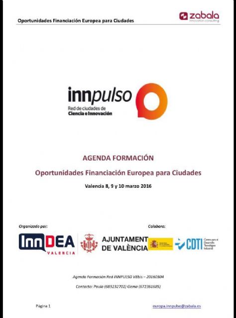 El Ayuntamiento de Molina de Segura participa en la jornada Oportunidades de Financiación Europea para Ciudades, de la Red de Ciudades de Ciencia e Innovación, Red Innpulso, que se celebra en Valencia los días 8, 9 y 10 de marzo. El consistorio molinense forma parte del grupo de ciudades y localidades innovadoras pertenecientes a la Red estatal Innpulso, con el objetivo de posicionarse y conseguir financiación europea destinada a proyectos de innovación.