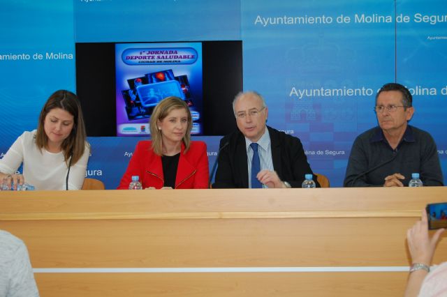 La I Jornada de Deporte Saludable "Ciudad de Molina", promovida por el Hospital de Molina, el Ayuntamiento de Molina de Segura y la Asociación de Deportistas de Molina (ADM), se celebrará el miércoles 1 de junio. Esta mañana se ha presentado en rueda de prensa en el Consistorio molinense, con la presencia de la Alcaldesa de Molina de Segura, Esther Clavero Mira, el Director-Gerente del Hospital de Molina, Pedro Hernández Jiménez, la Concejala de Salud Pública del Ayuntamiento de Molina de Segura, Esther Sánchez Rodríguez, y el Presidente de la ADM, Miguel Sánchez Palazón.