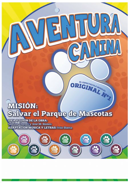 La idea y guión de la obra corresponden a Sabrina Chávez y José M. Ramos, autores también de Aventura en nunca jamás, el musical de hadas y piratas, La reina de las nieves, en un día lleno de sorpresas, y Vaya Santa Claus, una navidad sorprendente. Ahora llega a Molina de Segura Aventura Canina, una propuesta llena de emociones fuertes junto al equipo de mascotas más divertido del momento. Los más pequeños podrán disfrutar de música y voces en directo, sorpresas y mucha diversión. Deberán ayudar al protagonista y a su equipo a salvar el parque de mascotas de unos malhechores. Sus estrategias serán el trabajo en equipo, la amistad y el amor a los animales. La adaptación musical y letras son obra de Iván Baena.
