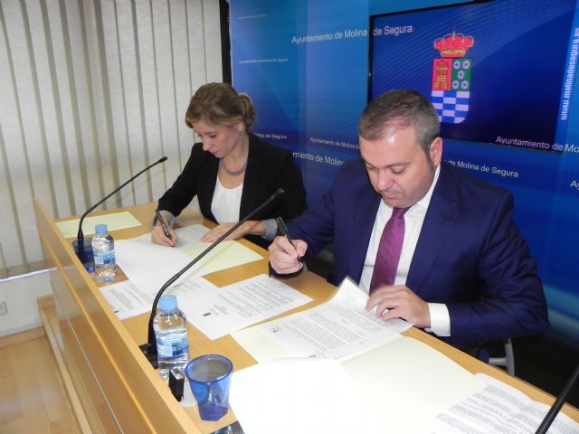 La Alcaldesa de Molina de Segura, Esther Clavero, y el consejero delegado de Grupo Sureste, en su calidad de presidente de la Fundación Colucho, Raúl Colucho, han firmado hoy un protocolo de actuación para la dinamización del empleo en el municipio que contempla la creación de las mencionadas becas y el compromiso de Grupo Sureste de incorporar a su bolsa de empleo a quienes superen con éxito la formación. La previsión es que al menos 20 de estas personas puedan ser contratadas el primer año.