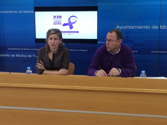 El XIII Programa de Prevención de Violencia de Género de Molina de Segura 2016, promovido por la Concejalía de Bienestar Social del Ayuntamiento molinense y la Red de Centros de Atención Especializada para Mujeres Víctimas de la Violencia de Género, en colaboración con Proyecto Abraham, ha sido presentado en rueda de prensa hoy martes 22 de noviembre, en la Sala de Prensa del Ayuntamiento, por la Alcaldesa de la localidad, Esther Clavero Mira, y el Concejal de Bienestar Social, Ángel Navarro García.