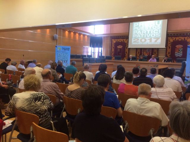 El acto de presentación del proceso de los Presupuestos Participativos 2017 del Ayuntamiento de Molina de Segura tuvo lugar ayer lunes 22 de mayo, en el Salón de Plenos del Ayuntamiento. Intervinieron la Alcaldesa de la localidad, Esther Clavero Mira, el Vicepresidente de la Federación de Asociaciones de Vecinos Interbarrios, Santiago Pastor Palazón, el Concejal de Participación Ciudadana, Pedro Jesús Martínez Baños, y el Presidente del Consejo de la Transparencia de la Región de Murcia, José Molina Molina.