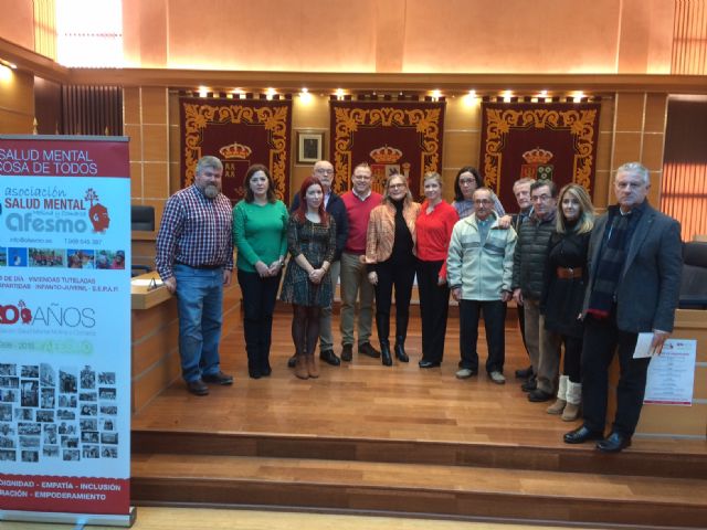 La alcaldesa de Molina de Segura Esther Clavero, el concejal de bienestar social de Molina de Segura Ángel Navarro García,la presidenta de Afesmo, Delia Topham y el vicepresidente de Afesmo, Diego Yepes, han sido los encargados de anunciar los eventos que la Asociación Salud Mental Molina y Comarca llevará a cabo durante este 2018, con motivo de esta efemérides.