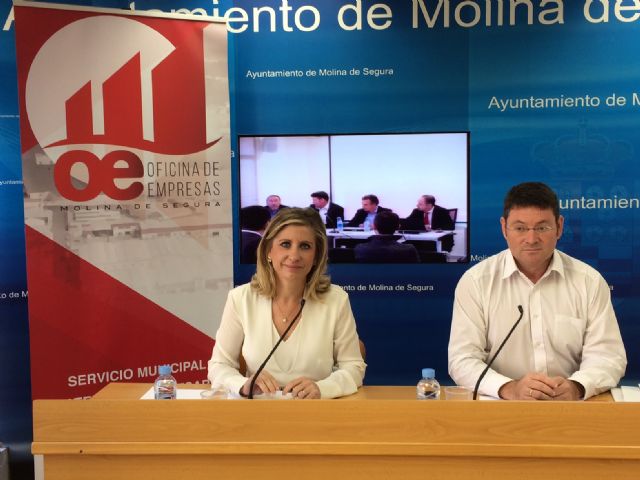 La nueva Oficina de Empresas del Ayuntamiento de Molina de Segura ha sido presentada en rueda de prensa hoy jueves 18 de octubre, en el consistorio molinense, por la Alcaldesa de la localidad, Esther Clavero Mira, y el Concejal de Promoción y Estrategia Económica, José de Haro González.