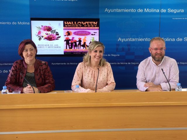 La actividad, junto al evento Halloween Sport Fest 2018 organizado por la Concejalía de Deporte y Salud, ha sido presentada en rueda de prensa hoy lunes 22 de octubre, por la Alcaldesa de Molina de Segura, Esther Clavero Mira, la Concejala de Mercados, Fuensanta Martínez Jiménez, y el Concejal de Turismo, Artesanía y Fiestas Locales, Andrés Martínez Cervantes.