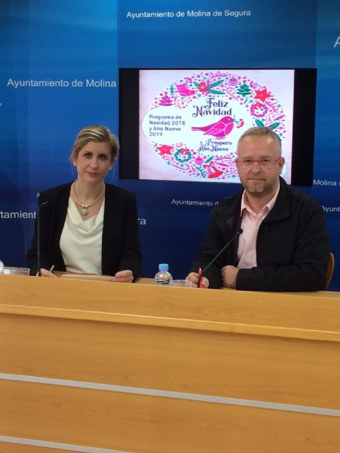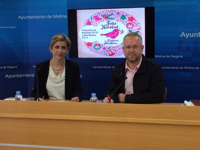 El programa de actividades organizado por la Concejalía de Fiestas Locales del Ayuntamiento de Molina de Segura con motivo de la próxima Navidad 2018/2019 ha sido presentado en rueda de prensa hoy miércoles 28 de noviembre. A la presentación han asistido la Alcaldesa de la localidad, Esther Clavero Mira, y el Concejal de Fiestas Locales, Andrés Martínez Cervantes.