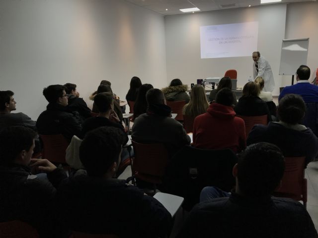 Aproximadamente, 50 estudiantes de esta asignatura han conocido de la mano del Jefe de Servicio de Farmacia y Director de Calidad del Hospital de Molina y Profesor de Farmacia de la UCAM, Dr. Francisco López Guerrero, la aplicación práctica de lo que se puede hacer en un Hospital con la terapia farmacológica.
