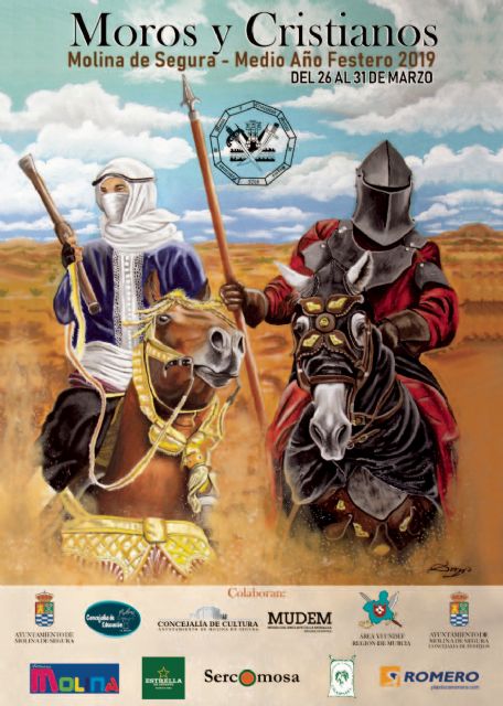 El cartel es obra del pintor murciano Sergio Ruiz Luján, realizado en óleo sobre lienzo, bajo el título de Pobladores, y el programa del Medio Año Festero 2019 de Moros y Cristianos Molina de Segura 2018 es el siguiente: