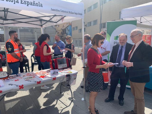 Posteriormente, el Consejero en funciones de Salud de la CARM, Manuel Villegas García, ha visitado los stands "Salud y Solidaridad", ubicados en la Plaza del MUDEM, con los que se da visibilidad a la labor y las actividades que desarrollan las distintas organizaciones sociales con las que el Hospital de Molina mantiene una estrecha colaboración: Fundación Ambulancia del Deseo, ASPAPROS, Asociación Murciana de Rehabilitación Psicosocial (ISOL), ASSIDO, ASTRADE, DOCUVIVA (FEYCSA), Cirugía Solidaria, Cruz Roja, Cáritas, AECC, AFESMO, Consejo de Agricultura Ecológica de la Región de Murcia (CAERM), Taller de Pan La Subirana y NaturGreen.