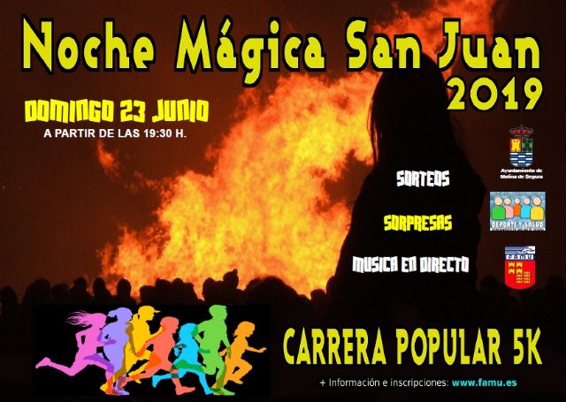 La Concejalía de Deportes de Molina de Segura, en colaboración con la Federación de Atletismo de la Región de Murcia, organiza la II Carrera Noche de San Juan, desde las 21:00h. con salida y meta en la Calle Mayor, a la altura de la Plaza de España