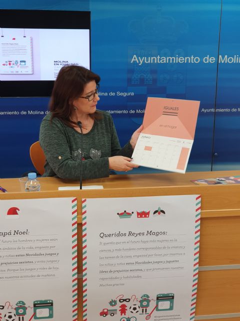 La campaña Juguetes No Sexistas y el Calendario Iguales 2020, promovidos por la Concejalía de Igualdad y Violencia de Género del Ayuntamiento de Molina de Segura, han sido presentados en rueda de prensa hoy miércoles 11 de diciembre, por la Concejala de Igualdad y Violencia de Género, Montserrat Montanos Villegas.