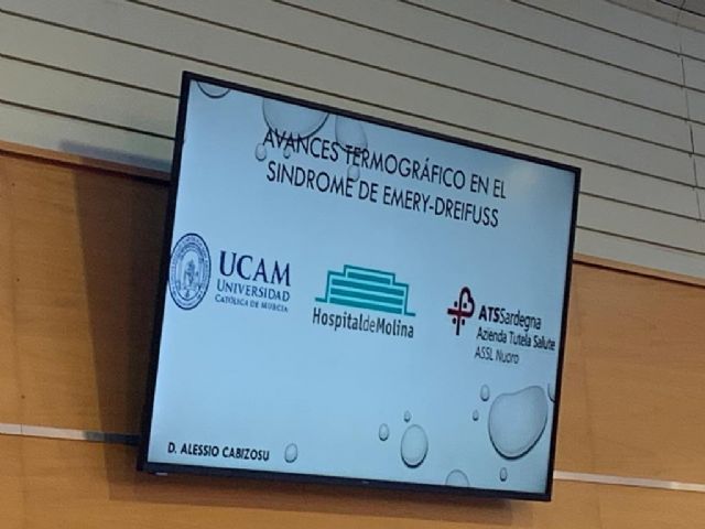 Así, Andrés Martínez-Almagro (Catedrático de Anatomía de la UCAM) y Alessio Cabizosu (investigador de la Cátedra de Investigación Hospital de Molina de la UCAM), han presentado los avances en el estudio de la termografía como herramienta de diagnóstico y evaluación de la distrofia muscular de Emery-Dreifuss: "La técnica termográfica se basa en la medición y cuantificación de la temperatura de la superficie corporal y puede convertirse en una novedosa herramienta de diagnóstico, al presentar numerosas ventajas, como la inmediatez de resultados o la no invasividad. Concretamente, al aplicarla a la distrofia muscular Emery-Dreifuss - un tipo de distrofia que afecta principalmente al músculo esquelético y cardíaco -, hemos encontrado diferencias de temperaturas dependiendo de la fase evolutiva de la enfermedad en relación con los parámetros edad índice de masa corporal".