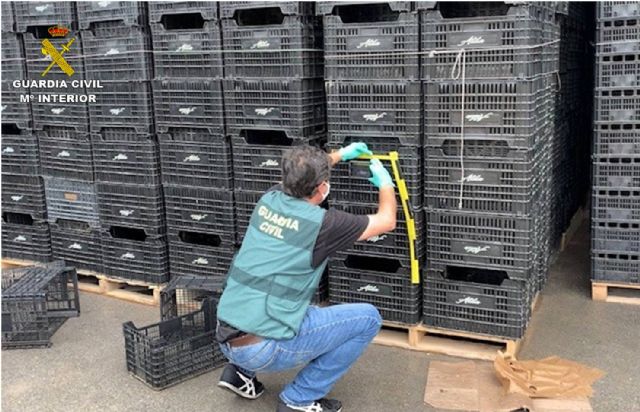 Tras la detención, se realizó otro registro en otra nave agrícola de Cox, donde se recuperaron hasta 420 nuevas cajas de plástico.