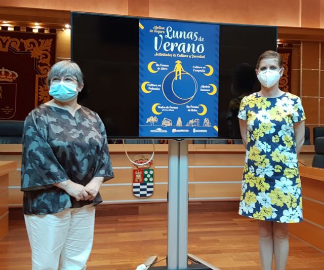 El programa Lunas de Verano en Molina, promovido por las concejalías de Cultura y Juventud del Ayuntamiento de Molina de Segura, ha sido presentado en rueda de prensa, hoy jueves 25 de junio, en el Salón de Plenos municipal, por la Alcaldesa de la localidad, Esther Clavero Mira, y la Concejala de Cultura y Juventud, Soledad Nortes Navarro.