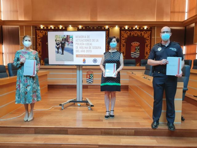 La Memoria de Actuaciones de la Policía Local de Molina de Segura del año 2019 ha sido presentada en rueda de prensa, hoy viernes 26 de junio, por la Alcaldesa de la localidad, Esther Clavero Mira, la Concejala de Seguridad Ciudadana y Policía Local, Julia Fernández Castro, y el Comisario Principal de la Policía Local, José Pérez Almagro.