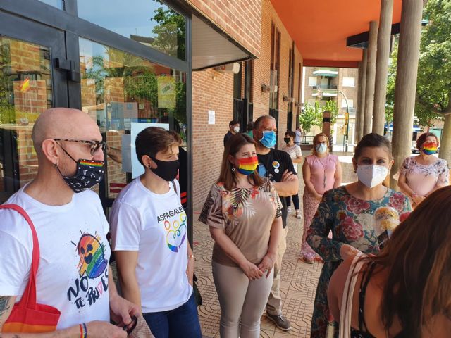 Con motivo del Día Internacional del Orgullo LGTBIQ 2020, que se conmemora el 28 de junio, la Concejalía de Igualdad ha procedido este viernes al depliegue de una pancarta LGTBIQ en la falchada del Ayuntamiento de Molina de Segura, con asistencia de la Alcaldesa de la localidad, Esther Clavero Mira, concejales y concejalas del Equipo de Gobierno, el Presidente del colectivos No te prives, Jesús Costa, la Vicepresidenta de ASFAGALEM, Nuria Montiel y el vocal de Galactyco de Cartagena, José María García..