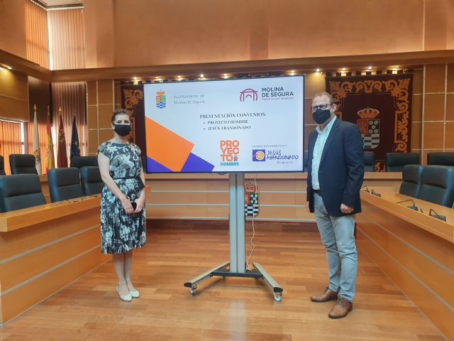 Los convenios promovidos por la Concejalía de Bienestar Social del el Ayuntamiento de Molina de Segura con "Proyecto Hombre" y "Jesús Abandonado", han sido presentados en rueda de prensa, hoy miércoles 29 de julio, en el Salón de Plenos del Consistorio molinense, por la Alcaldesa de la localidad, Esther Clavero Mira, y el Concejal de Bienestar Social, Ángel Navarro García.