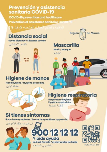 La Concejalía de Deporte y Salud del Ayuntamiento de Molina de Segura ha distribuido en más de 40 comercios de la localidad carteles informativos sobre prevención y asistencia sanitaria ante el COVID-19 en español, inglés, francés y árabe, con el fin de concienciar sobre la normativa COVID en materia de distancia social, higiene de manos y respiratoria, uso obligatorio de mascarilla, forma de actuar ante posibles síntomas y lugares a los que acudir en caso de necesitar ayuda.
