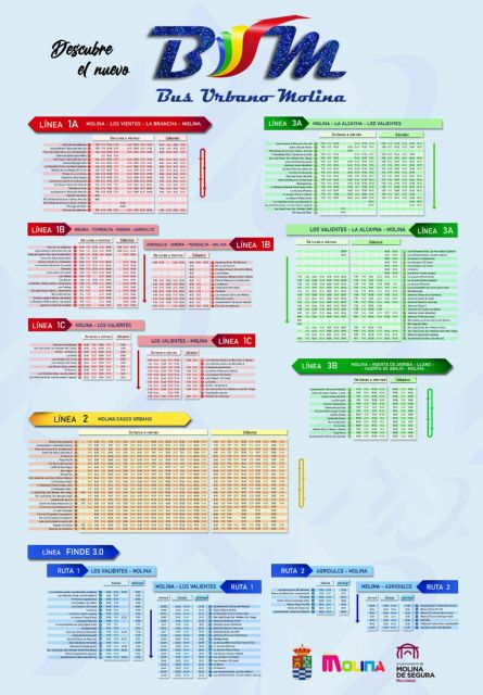 La Concejalía de Movilidad ha articulado seis líneas de lunes a sábado por la mañana, con diferentes recorridos, y dos líneas los sábados y domingos por la tarde, para corregir los desequilibrios que produce la estructuración dispersa de las diferentes zonas habitadas de la localidad. Esta remodelación consigue dotar a Molina de Segura de una red de transporte público urbano vertebrador y atractivo para el conjunto de la ciudadanía.