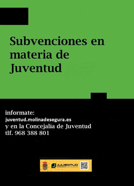 El Ayuntamiento de Molina de Segura, a través de la Concejalía de Juventud, realiza una convocatoria de subvenciones en materia de juventud para este año 2020, destinada a las asociaciones y colectivos juveniles para promover programas y proyectos destinados a la población joven del municipio.