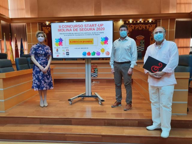 El Ayuntamiento de Molina de Segura, a través de la Oficina Municipal de Empresas, ha convocado el II Concurso de Start-Up Molina de Segura para iniciativas emprendedoras http://portal.molinadesegura.es/index.php?option=com_content&view=article&id=5726&Itemid=1388, con el objetivo con el objetivo de premiar ideas e iniciativas emprendedoras dotadas de originalidad, innovación y viabilidad económica, procedentes de la Región de Murcia y de Molina de Segura. Las bases del concurso han sido presentadas en rueda de prensa, hoy jueves 17 de septiembre, en el Salón de Plenos del Ayuntamiento, por la Alcaldesa de la localidad, Esther Clavero Mira, el Concejal de Economía, Hacienda y Promoción y Estrategia Económica, José de Haro González, y el Presidente de la Asociación de Empresarios y Comerciantes del Segura (ASECOM), Eloy Jiménez Gambín.