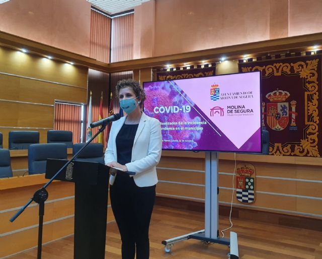 La Alcaldesa de Molina de Segura, Esther Clavero Mira, ha presentado en rueda de prensa, hoy jueves 22 de octubre, en el Salón de Pleno municipal, los datos actualizados de la incidencia de la pandemia del COVID-19 en el municipio.