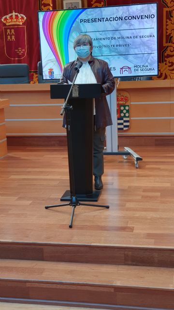 El acto de presentación del convenio de subvención nominativa del Ayuntamiento de Molina de Segura al Colectivo No Te Prives LGTBI de la Región de Murcia para la realización de actividades de sensibilización contra la LGTBIfobia y actividades socio educativas sobre diversidad afectivo sexual de género en 2020 ha tenido lugar hoy viernes 20 de noviembre, en el Salón de Plenos del Consistorio molinense.