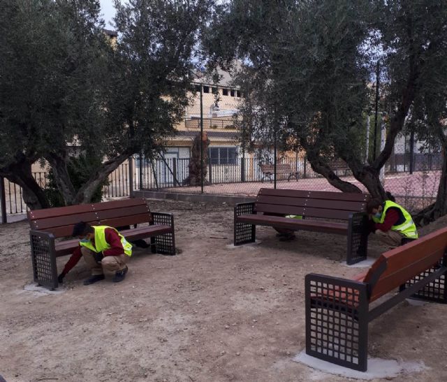 El alumnado del Programa Mixto de Empleo y Formación JV San José 1 instala 8 bancos, modelo "escuela taller", en la pedanía de La Ribera de Molina, como parte de las actuaciones sujetas al proyecto, que se inició el pasado día 1 de septiembre, con una duración de 12 meses, dirigido a 32 alumnos/as desempleados, menores de 25 años.