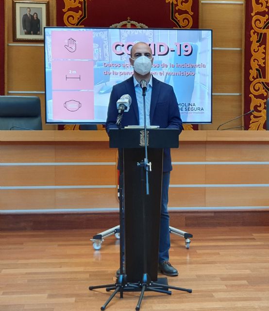 El Alcalde de Molina de Segura, Eliseo García Cantó, ha presentado en rueda de prensa, hoy jueves 25 de febrero, en el Salón de Plenos municipal, los datos actualizados de la incidencia de la pandemia del COVID-19 en el municipio y las nuevas medidas adoptadas por el equipo de gobierno municipal.