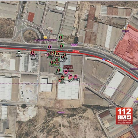 El 1-1-2 ha recibido un centenar de llamadas informando del incidente desde las 11.23 horas. Al lugar se han movilizado patrullas de la Policía Local y Nacional, bomberos del Consorcio de Extinción de Incendios y Salvamento de la Región de Murcia y del Servicio de Extinción de Incendios y Salvamento del Ayuntamiento de Murcia (en total, 30 bomberos y una decena de vehículos de extinción), miembros de Protección Civil y ambulancias con personal sanitario de la Gerencia de Urgencias y Emergencias Sanitarias 061. No hay noticia de ningún herido.