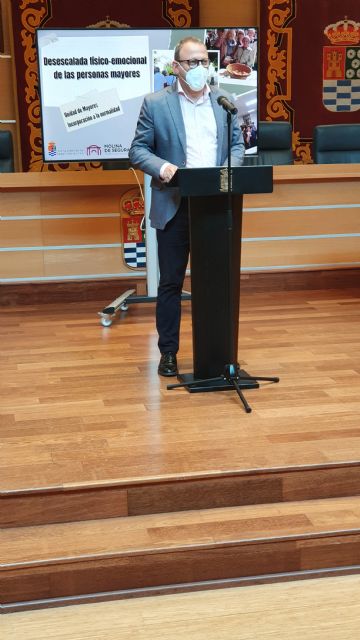 La primera fase del Plan de Desescalada Físico-Emocional de los Mayores, promovida por la Unidad de Mayores de la Concejalía de Bienestar Social del Ayuntamiento de Molina de Segura, ha sido presentada en rueda de prensa, hoy martes 11 de mayo, en el Salón de Plenos del Consistorio molinense, por el Alcalde de la localidad, Eliseo García Cantó, y el Concejal de Bienestar Social, Ángel Navarro García.
