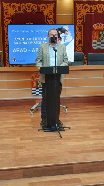 Los convenios firmados por el Ayuntamiento de Molina de Segura con las asociaciones AFAD y APAMOL han sido presentados en rueda de prensa, hoy miércoles 30 de junio, en el Salón de Plenos del Consistorio molinense, por el alcalde de la localidad, Eliseo García Cantó, la presidenta de AFAD, Trinidad Gómez García, la presidenta de APAMOL, Patricia López López, y el concejal de Bienestar Social, Ángel Navarro García.